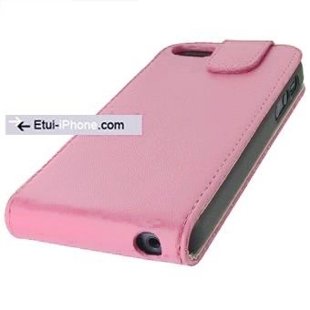 Un étui cuir lisse rose type flip iPhone 5 de très bonne qualité à prix discount.