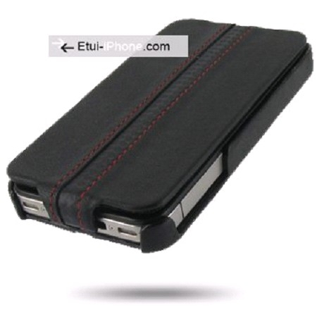 Etui iphone 5 clapet cuir luxe Défender black coutures rouges, cousu main, avec sa bande centrale en cuir façon carbone, il recevra votre iphone dans une coque rigide en PVC doublée cuir, sa charnière souple permet un retour du rabat pour une meilleur protection de votre écran. En bref un produit design, fonctionel. |