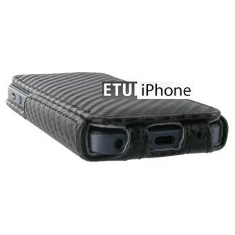 Etui iPhone 5 simili cuir effet carbone noir, un produit simple efficace et design premier prix. Vous aurez accès directement et facilement à toutes les fonctions de votre iPhone 5. Rabat à clapet légèrement rembourré d'un tissu microfibre auto nettoyant pour protéger l'intégrité de votre écran tactile. Superbe |