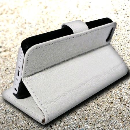 Etui cuir portefeuille luxe blanc pour iPhone 5C