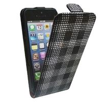Etui cuir clapet iPhone 5 vichy blanc et noir
