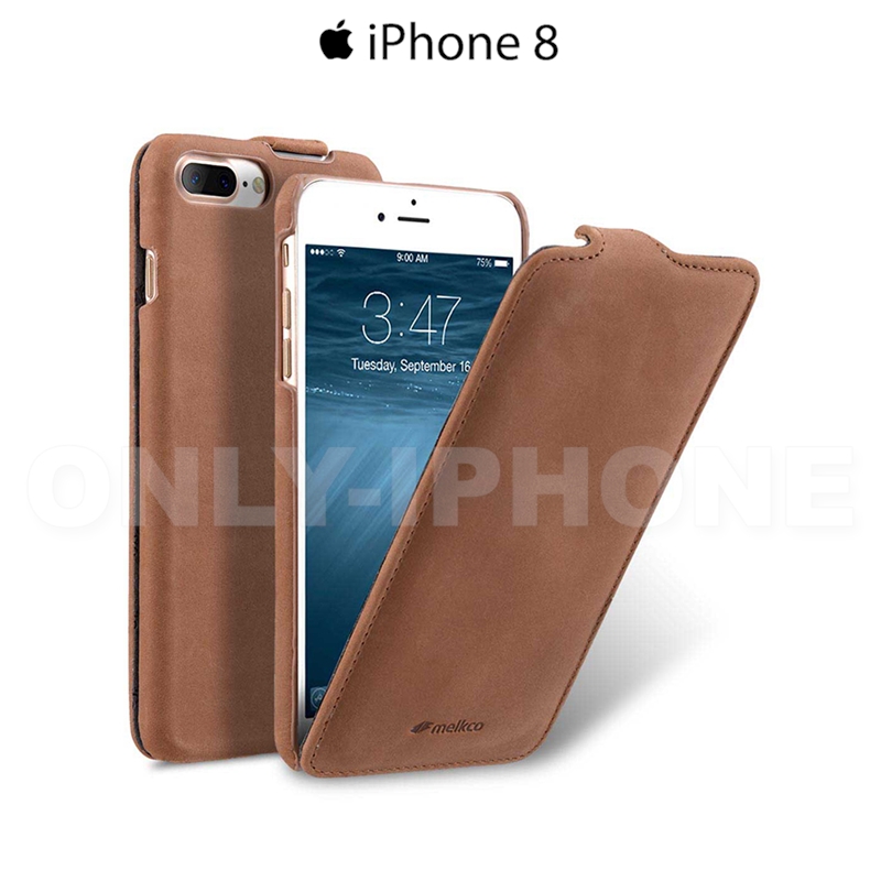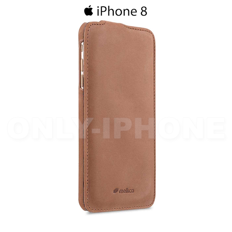 Étui cuir luxe clapet iPhone 8 vintage Melkco