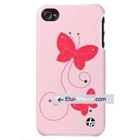Coque cuir clip & go iPhone 4/4S Swarovski Papillon rose |
