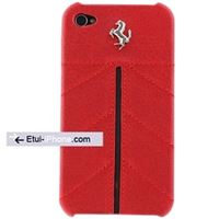 Coque iPhone 4/4S cuir noir bande rouge ferrari |