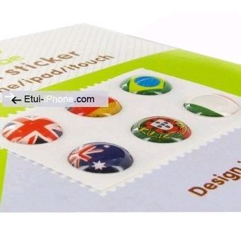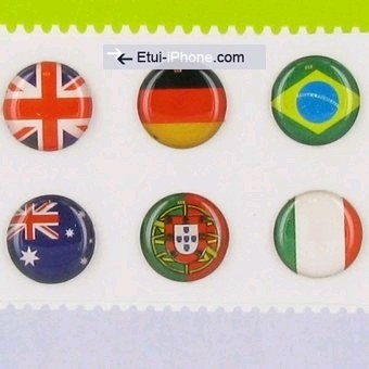 Planche de 6 stickers dreapeaux série N°2 boutons reliefs en epoxy glossy à coller sur le bouton de contrôle de votre iPhone iPad, iPod touch. Donnera un look fun et agréable à votre appareil. Réutilisable à souhait grâce a son adhésif repositionnable performant. sont présent les drapeaux: UK, Allemagne, Brésil, Australie, Portugal, Italie |