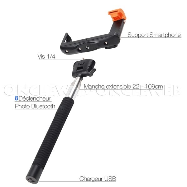 Solide et légère, elle vous permet de prendre des photos en mains libres avec le bouton sans fil Bluetooth.
